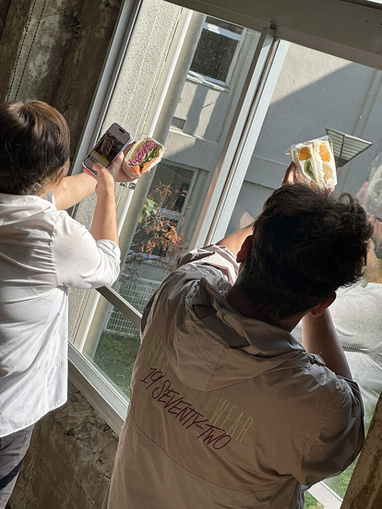 管理栄養士の私と同い年の40代男性の受講生Oさん。この日は早めに終わったので写真の撮影の仕方も少しだけレクチャー。料理写真は半逆光が基本。これは順光。