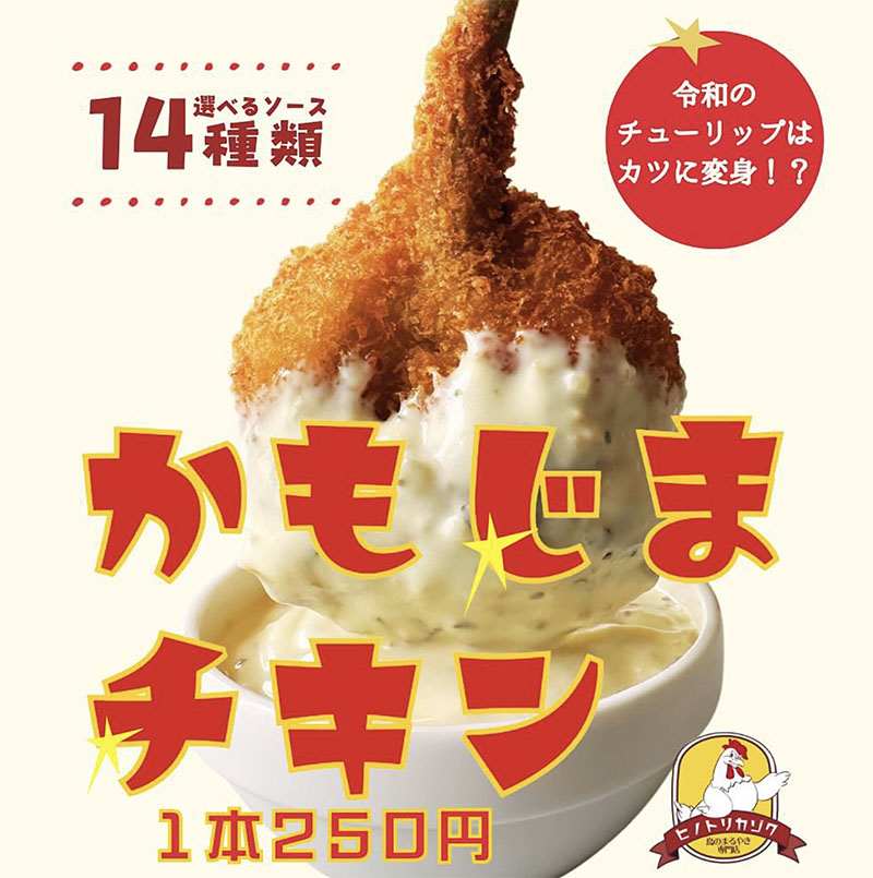 マルシェに出す商品を考えていた時に、うちは鶏肉がメインなんで普通に唐揚げを出そうと思っていたら、椋木さんから「ただの唐揚げを出したら今後絶対にダメになる。差別化しないとイメージがマイナスになるから、そんなもん出すくらいなら出店しない方がいいですよ。」と全力でストップがかかったので、骨付きのチューリップ型のチキンカツ、「かもじまチキン」を開発しました。