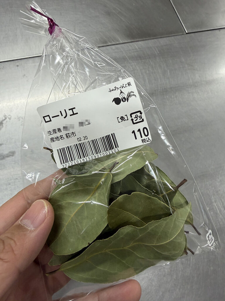 萩野菜ピクルスではローリエや鷹の爪は「調味料」として使用しており「可食部」ではありません。