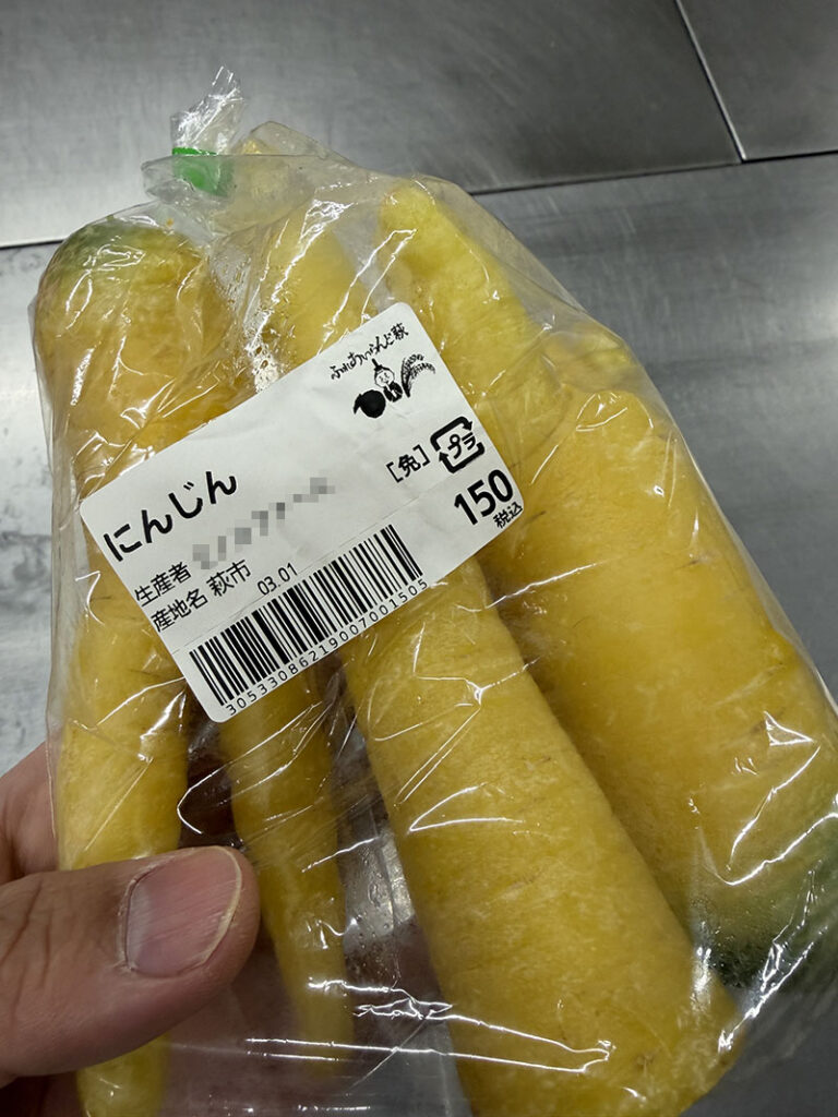 【重要です】食材の調達。「主たる原材料」の「萩市産」の「人参」