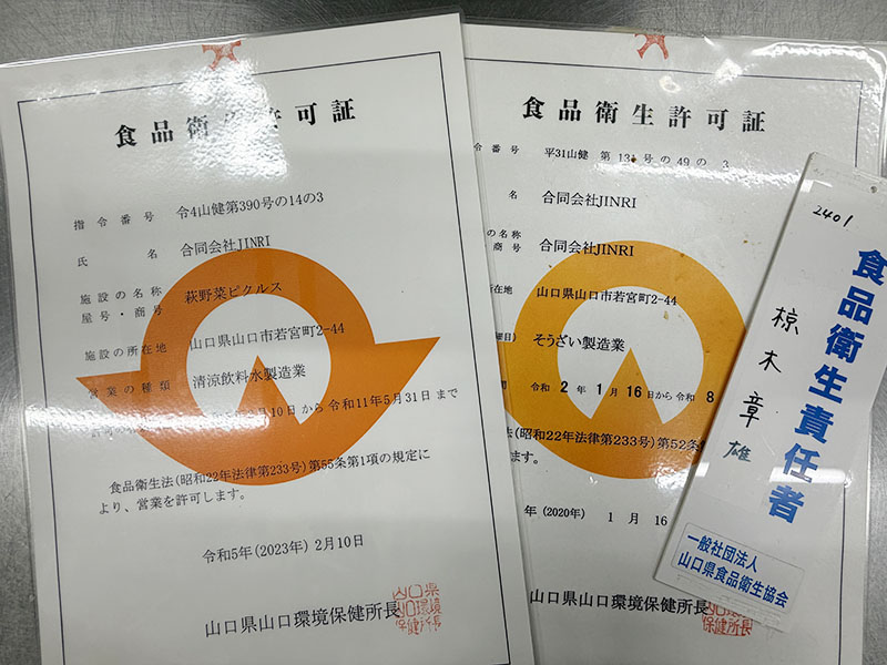 ピクルスが作りたい場合は「漬物製造業」を取得します。