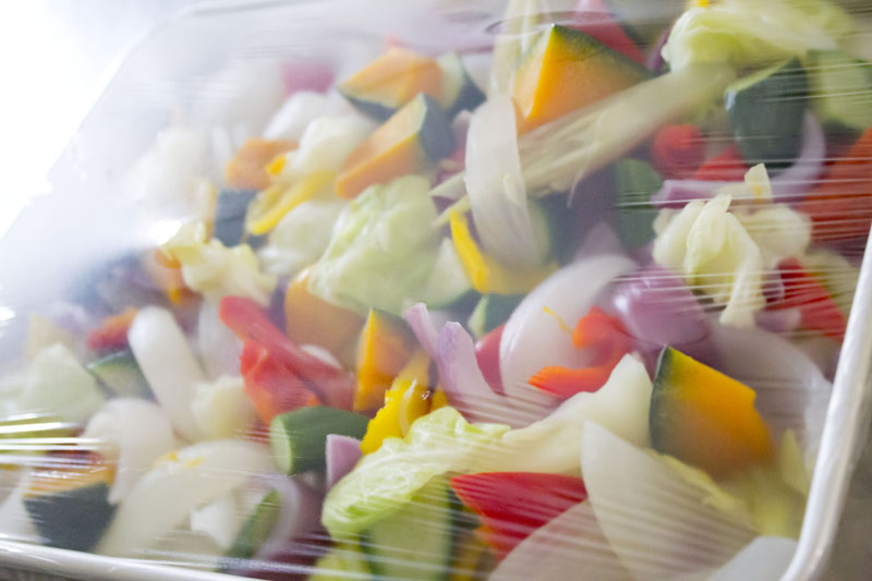①の浅漬けの作り方は、切った野菜を前日にピクルス液に漬けるだけです。なので野菜の食感もパリッと歯応えのある状態で提供することができます。