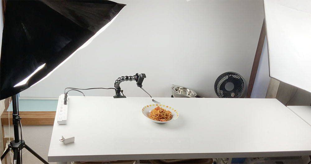 料理は自然光(太陽の光)で撮影した方がシズル感などが出しやすく美味しそうな写真が取れるのですが、自然光は日の高さや天気によって光量がバラバラなのでいわゆる「商品撮影」には向いていません。